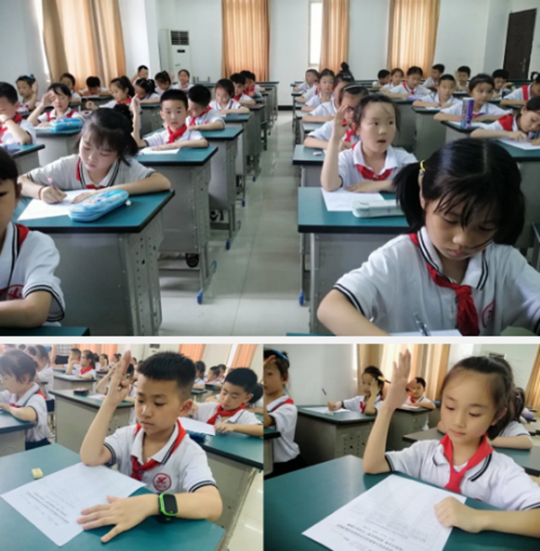 比賽現場,由教師讀出四字詞語,學生將聽到的詞語寫在答題紙上。賽場上,小選手們個個表現不凡,看著他們比賽時專注的神情,瞧著他們端正雋秀的字跡,可以看出他們個個都進行了全面的賽前準備。比賽期間,同學們嚴格遵守紀律,都能做到安靜專注地聽,認真快速地答,工整規范地書寫,細致入微地檢查。