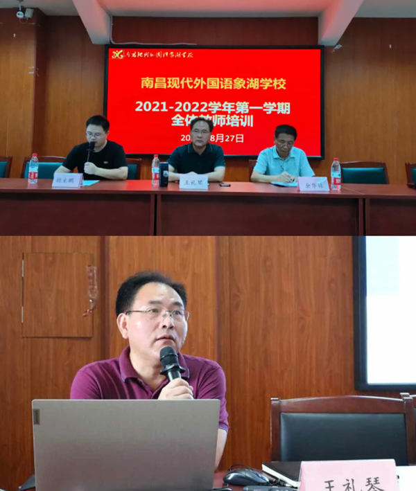 秋蟲吟唱,花木繁盛,整個校園都按捺不住與同學們再見的喜悅。為了引領全體教師假后全身心投入教育一線,助力全體教師新的學期在工作崗位上能有跨越式的發展,為了給予青年教師們在班級管理和家校溝通方面能有更多的經驗積累和認知。8月26日,南昌現代外國語象湖學校召開了2021開學前教師培訓會暨秋季開學工作布置會議,以最好的姿態共同開啟新學期的大門。校領導班子出席本次教師培訓大會。