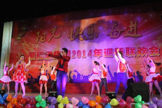 2014年1月4日下午,聚仁堂集團在南昌現代外國語學校大禮堂舉辦了2014年“陽光 快樂 奮進”迎新聯歡會。集團董事長胡樂平、副董事長兼總經理劉堅、副董事長劉雁華,集團總部各部門負責人,下屬公司、院校領導,以及來自集團各單位的員工、教師共1000余人歡聚一堂,表彰先進,觀看演出。在熱烈的喜慶氛圍中,大家一起回顧了2013年聚仁堂集團發展的各項成就,共同分享了成功的喜悅,并展望2014年的美好前景。
