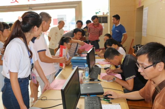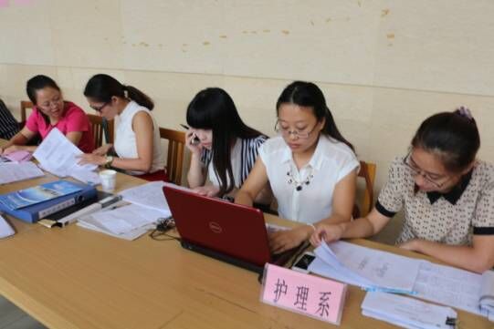 系部老師在為新生辦理接收手續