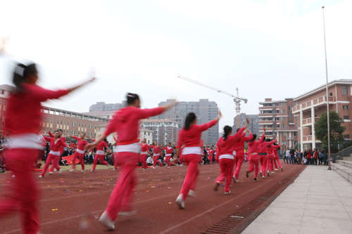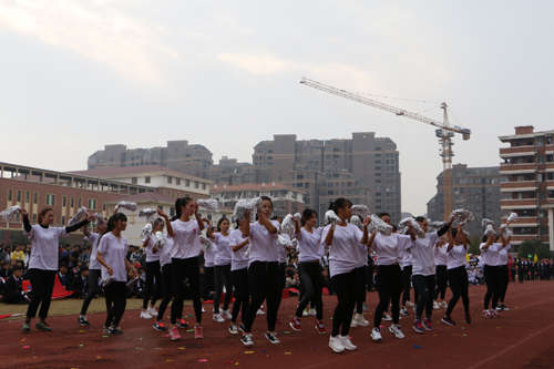 隨后,歌舞表演把開幕式的氣氛推向了高潮,同學(xué)們用動感舞動青春,引起全場的轟動。