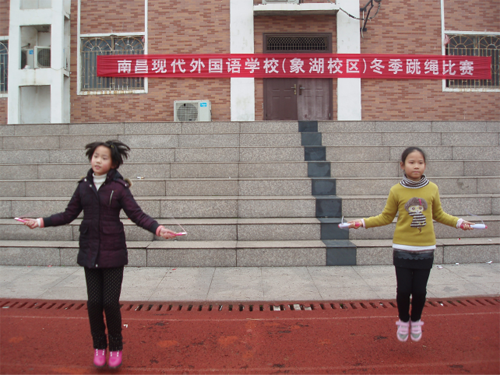 為更好地開展冬季體育運動,增強學生的體質,培養學生團結、拼搏的精神,12月23日,南昌現代外國語學校(象湖校區)舉行了一場緊張、激烈的跳繩比賽。操場上一片歡騰景象,一根根彩繩、一個個純真的笑臉在燦爛的陽光下飛舞、綻放。“各就各位,預備——跳。”“嚓嚓嚓”繩子不斷拍打地面,啦啦隊更是不甘示弱,喊得一陣比一陣響,喊得一陣比一陣亮。這次跳繩比賽凝聚了老師,同學的熱情。比賽前,為集體爭光的堅強信念每天激勵著同學們努力練習,你追我趕,積極備戰。比賽中,各個同學精神抖擻,信心十足,賽場上龍騰虎躍,身手不凡。最終由四(7)班的鄔梓賢與六(2)的徐宇豪分別以一分鐘雙腳跳216與210的好成績共同獲得一等獎。