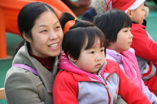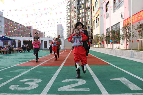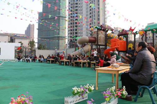 活動開場,全體幼兒、家長手牽手入場圍城一個大圓圈共跳舞蹈“鈴兒響叮當”;緊接著,園長和家長代表各自發言來表達對幼兒園節日的祝福;發言結束后,幼兒和教師一起表演,孩子們將自己學到的舞蹈全方位的展示給爸爸媽媽們;家長和孩子們一起參加的親子游戲將幼兒園的快樂氣氛推向又一個高潮,親子游戲精彩紛呈,“剝桔子”、“搶椅子”、“蹲蹲樂”、“大腳踩小腳”等親子游戲贏得了大人們孩童般的天真笑聲,孩子因開心而樂,家長因滿意而笑,快樂匯聚成幸福的海洋,讓大家深深感受到江西迪斯尼幼兒園朝陽園這個大家庭的溫暖。