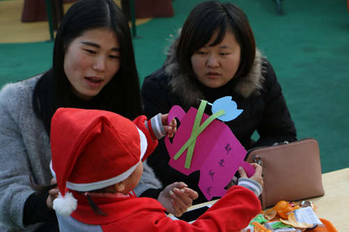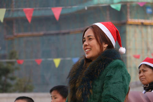 園外寒風襲人,園內春意融融,五彩的氣球、飄飛的彩旗、繽紛多彩的圣誕樹,將活動的現場渲染得異常火爆,每個人的臉上都寫滿了歡樂和喜悅。