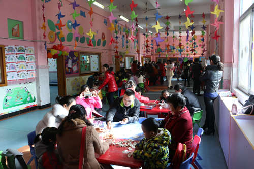 本次活動內(nèi)容共包括教學展示、老師舞蹈表演、親子游戲以及包餃子四個內(nèi)容。其中親子游戲掀起了本次活動的高潮,在親子游戲中,寶寶和家長們共同完成路障游戲任務,家長的著急,幼兒的認真,惹得場外的觀眾哈哈大笑,活動場地上隨處可見孩子和家長爽朗的笑聲和有力的加油聲。 每一輪游戲結束后,冠軍組的家庭和參與組家庭都會贏得場外的觀眾的喝彩。整個活動中,家長、孩子、老師臉上都洋溢著幸福快樂的笑容。