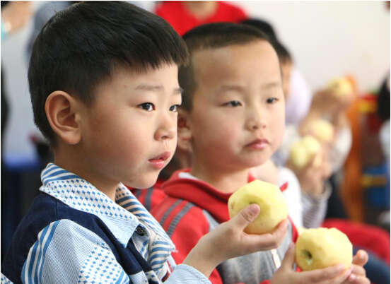 戶外活動結束后,各班幼兒在領隊老師的帶領下有序進入教室。隨后,家長跟隨園長老師們全程觀摩幼兒入廁、洗手、喝水、吃水果的常規活動。各班有序組織幼兒分組入廁、洗手、喝水、吃蘋果,主班老師在活動室和盥洗室門口隨時提醒幼兒有序排隊,并觀察其接水量等,整個活動環節沒有你擠我、我碰你的現象,保證了孩子的安全,每個環節都在教師的組織下井然有序進行。