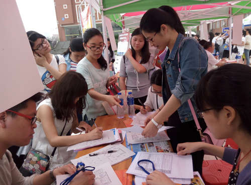 2016年5月7日,江西科技師范大學(xué)在紅谷灘紅角洲校區(qū)C樓廣場(chǎng)舉行2016屆畢業(yè)生大型供需見(jiàn)面會(huì)。應(yīng)該校招生就業(yè)辦邀請(qǐng),南昌現(xiàn)代外國(guó)語(yǔ)學(xué)校在招聘會(huì)現(xiàn)場(chǎng)開(kāi)設(shè)展位,進(jìn)行專場(chǎng)招聘。南現(xiàn)外校辦周主任帶領(lǐng)高中部多名教師赴江西科技師范大學(xué)開(kāi)設(shè)專場(chǎng)招聘。
