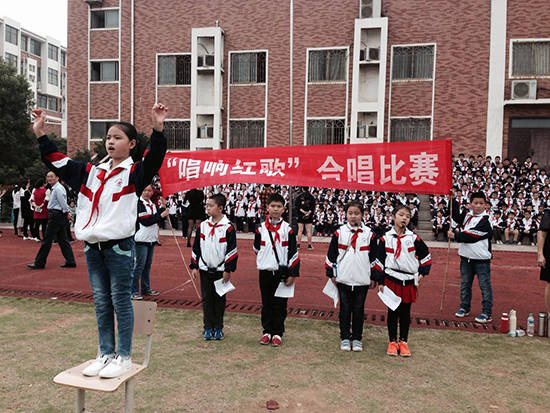 紅歌代代傳、歌聲頌祖國。為隆重紀念長征勝利80周年,激發師生熱愛祖國、熱愛黨的情懷,陶冶高尚的情操,建設和諧校園,展現學生昂揚的精神風貌,10月20、21日下午南昌現代外國語學校(象湖校區)根據學校統一安排,由大隊部聯合年級組長分年級在學校大操場舉行了“唱響紅歌”合唱比賽。此次活動以班級為單位,全校3-6年級全體學生參加。演唱內容以歌頌黨、歌頌祖國、歌頌社會主義、歌頌老一輩無產階級革命家、歌頌改革開放以來的輝煌成就和人民幸福美好生活為主的愛國主義歌曲。