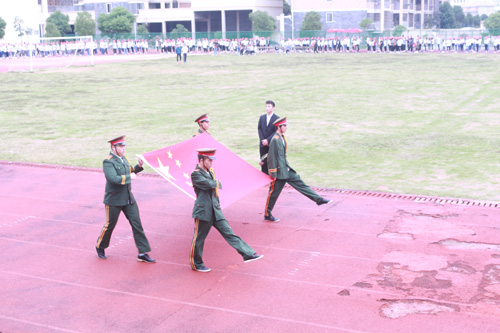 國歌奏畢,國旗飄揚。省教育廳督導專員兼學院黨委書記周瑾同志向全體師生莊嚴宣布江西省工商職業技術學院第七屆田徑運動會正式開幕。