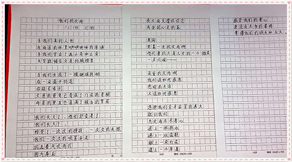 本次比賽分初賽和決賽,初賽由五、六年級全體學(xué)生完成一篇“親情作文”。在班級中選出5名優(yōu)秀學(xué)生,代表班級參加學(xué)校以“學(xué)會(huì)感恩”為主題的現(xiàn)場征文決賽。