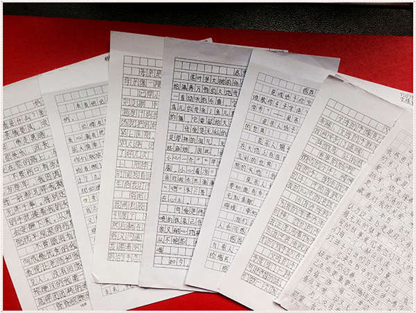 比賽現(xiàn)場,參賽選手圍繞主題盡情揮筆,潛心寫作。安靜的賽場上,學(xué)生們文思如涌,妙筆生花,每篇作文都洋溢著健康向上的氣息,文筆優(yōu)美,感情真摯。字里行間表露了孩子的天真無邪,活潑可愛,更流露出孩子的濃濃感激之情。通過一輪激烈的角逐,最后,經(jīng)評審組老師認(rèn)真評選,本次現(xiàn)場征文比賽共評選出一等獎(jiǎng)4名,二等獎(jiǎng)8名,三等獎(jiǎng)16名。