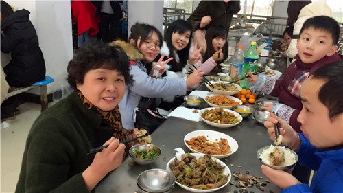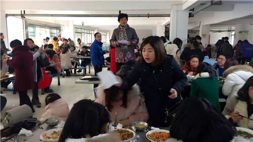 金猴報歲一年去,雄雞啼春好景來。2017年1月17日下午,南昌現(xiàn)代外國語學(xué)校(象湖校區(qū))食堂歡聲笑語,喜氣洋洋。全校教職員工齊聚一堂,以聚餐的形式為自己一年的努力喝彩!這是一個幸福快樂的家庭聚會,一個230多個教職員工的大家庭,勞作了一年,聚在一起,品嘗汗水培育的果實的聚會。會上,李金玉校長作了新年賀詞,她說:“我們有緣相聚在聚仁堂集團,在大家的共同努力下,我們學(xué)校發(fā)展規(guī)模上了一個新臺階。今天讓我們共同舉杯,慶祝本學(xué)期工作圓滿結(jié)束,祝愿大家過一個萬事如意平安年,夢想成功發(fā)財年”。副校長胡卓越彈起了手風(fēng)琴,一同和老師開心得歡樂起來。食堂大姐端來甘甜的美酒,讓大家開懷暢飲。一時間,會場沸騰起來了,歌聲、笑聲、喊聲,大家在把酒言歡中交流新年愿望。對酒當(dāng)歌,人生幾何,老師們盡情揮灑自己身為現(xiàn)外人的幸福!