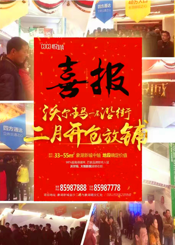 象湖沃爾瑪COCO悅城如此跑火,這樣的地段,這樣的商鋪,妥妥地生錢利器,真可謂買到即賺到啊!你還有什么理由不動(dòng)心?速速撥打電話咨詢訂購(gòu)吧!