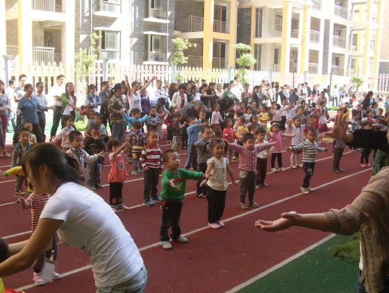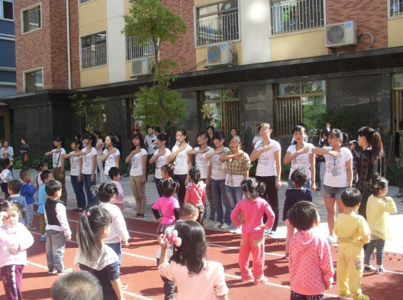 9月29日,在迪斯尼幼兒園、園外園幼稚園的操場上,響起了早操律動音樂,可愛的寶寶們在操場上跟隨著老師們的步伐,蹦蹦跳跳起來。在老師的帶動下,在場的家長們也紛紛加入進(jìn)來,和寶寶們一起又唱又跳。迪斯尼幼兒園的老師們表演了民族舞《天藍(lán)藍(lán)》,還進(jìn)行了古箏、個(gè)人舞的才藝表演,展示了幼兒園老師們朝氣蓬勃的精神面貌。園外園幼稚園的老師們也不甘示弱,在現(xiàn)場以特有的方式展現(xiàn)了幼兒園的承諾、愿景、文化。