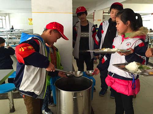 3月7日,南昌現代外國語學校象湖校區八(10)班同學在學校食堂當起了小雷鋒,他們有的幫助食堂阿姨拖地、端盤子,有的幫助學生盛湯,有的督促小學生不要浪費糧食,還有的幫助學生倒剩飯剩菜。他們積極主動、熱情高漲,他們用行動來弘揚雷鋒為人民服務的精神,并把這種精神傳染給每一個人。