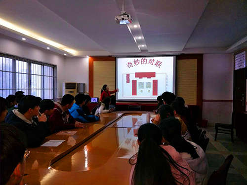 各社團活動別開生面、精彩紛呈。文綜組“古今天地”社團指導老師吳老師帶領同學們談“天”說“地”,和將近七十位學子研討”十二星座”;理綜組“奇妙物語”社團,陳老師指導同學們如何鑒定血型,同學們都聽得很認真,為自己下次活動能夠更準確地驗自己的血型做好準備。文理興趣社團活動課與生活息息相關,讓同學們能夠更好地把學習和生活相結合,真正做到學以致用。語文組“文學社”,劉老師指導學生對對子,學生們在你吟我對中走進古代才子佳人的世界;綜合組“書法繪畫社”,同學們在高老師的指導下一絲不茍地書寫;音樂社團的“流行課堂”,同學們在樂老師的指導下學發聲,學調整氣息,學亮開嗓子唱歌。語文組與綜合組的課堂則充滿文藝氣息。英語是我校的特色,“ENGLISH CLUB”注重的是學生開口說,施老師熱情洋溢的“演講”,深深吸引了學生,在這種氛圍影響下,靦腆的同學也嘗試開口說英語了。