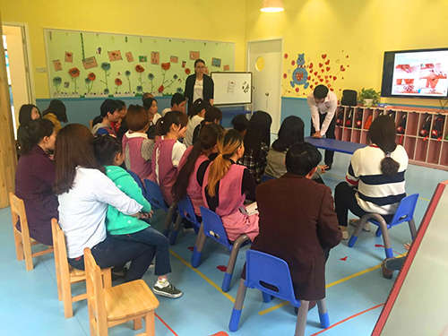 為加強幼兒園安全工作的管理,提高每位教職工和家長的安全教育意識,使教師和家長能在幼兒突發事件中運用一些簡單易行的急救技巧。近日,象湖園邀請了江西省全員健康教育中心擁有豐富經驗的黃老師,特來向大家培訓急救知識。