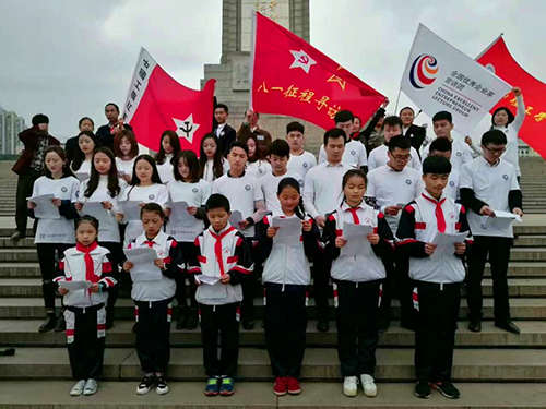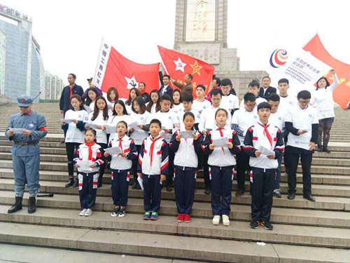 4月11日上午南昌現(xiàn)代外國語學(xué)校(迎賓校區(qū))部分中小學(xué)生在校領(lǐng)導(dǎo)的帶領(lǐng)下,乘車前往南昌八一起義紀(jì)念塔下參加了“為紀(jì)念建軍90周年,尋訪八一征程路中國夢鐵軍情”活動。