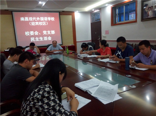 為進(jìn)一步抓好學(xué)校管理和發(fā)展工作,不斷增強(qiáng)領(lǐng)導(dǎo)班子發(fā)現(xiàn)和解決問題的能力,2017年6月9日晚上,南昌現(xiàn)代外國語學(xué)校迎賓校區(qū)校委會(huì)、黨支部成員在行政二樓會(huì)議室召開了民主生活會(huì)。會(huì)議由校長楊端煌主持。本次會(huì)議主題是——批評(píng)與自我批評(píng)。