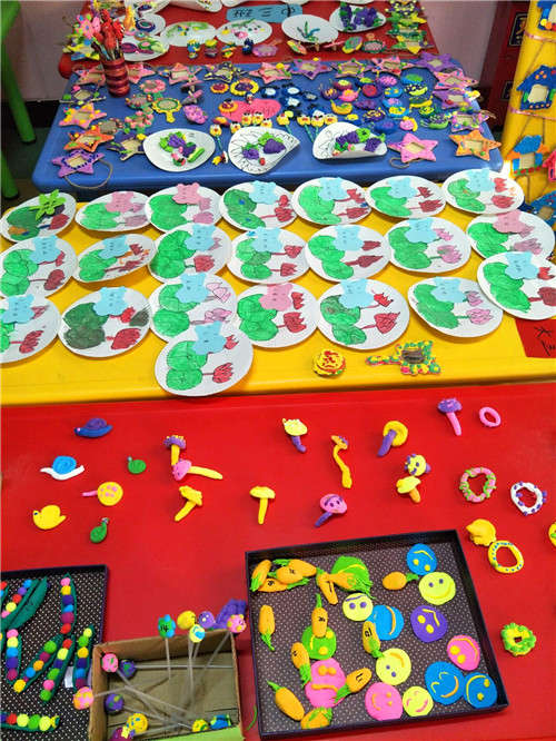 藝術(shù)節(jié)的作品形式多樣:有趣味彩泥、線描畫、蠟筆畫、水粉畫、創(chuàng)意美工作品等等。作品內(nèi)容豐富,極富創(chuàng)意,展示了幼兒在本學(xué)期興趣班的成長與收獲。孩子最喜歡玩,喜歡游戲。通過生動形象的語言,以游戲的形式開展教學(xué),把繪畫寓于游戲中,是幼兒園主要的教學(xué)方法。如在進(jìn)行蠟筆畫教學(xué)中讓幼兒游戲的方式進(jìn)行構(gòu)圖,在涂色方面指導(dǎo)孩子學(xué)習(xí)了相似色、漸變色等多種涂色方法。創(chuàng)意粘土手工制作活動讓孩子們盡情發(fā)揮想象力,用五顏六色的黏土捏出自己所想要的形狀與造型。