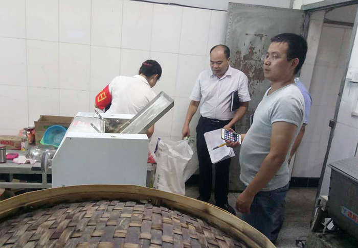 首先檢查組人員對(duì)食堂餐飲許可證、冷藏消毒、設(shè)備使用、食品留樣、健康證、進(jìn)貨食品索證索票、臺(tái)賬記錄等情況進(jìn)行了認(rèn)真細(xì)致的檢查。檢查組發(fā)現(xiàn)食堂管理制度不全,未按標(biāo)準(zhǔn)記錄原料采購(gòu)臺(tái)賬、貯存食品方式不規(guī)范、不合標(biāo)準(zhǔn)。