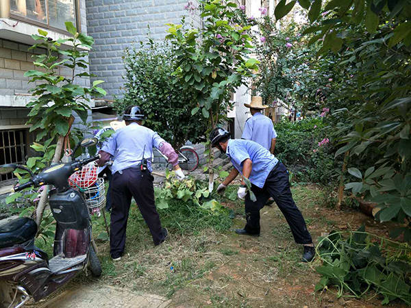 炎炎烈日下,聚龍物業員工汗流浹背,不放過任何死角,全體工作人員認真擦洗護欄,撿拾綠化帶中的垃圾,全面沖洗地面,對小區內的樓道堆放物、院內私搭亂建、垃圾死角、易燃物品進行徹底清理,對樓道內的小廣告進行了清除,還居民一個整潔衛生的生活環境,他們的身影形成了一道亮麗的風景。經過打掃,小區煥然一新,業主紛紛表示贊許。