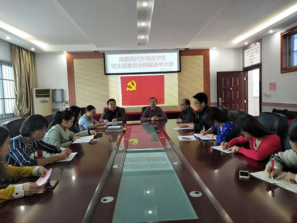 2017年10月26日下午,南昌現代外國語學校迎賓校區在行政樓二樓會議室召開了黨支部委員會換屆選舉大會,初中部校長兼原黨支部委員鄧華主持會議,校長楊端煌及駐該校黨建指導員熊春和蒞臨了本次大會。