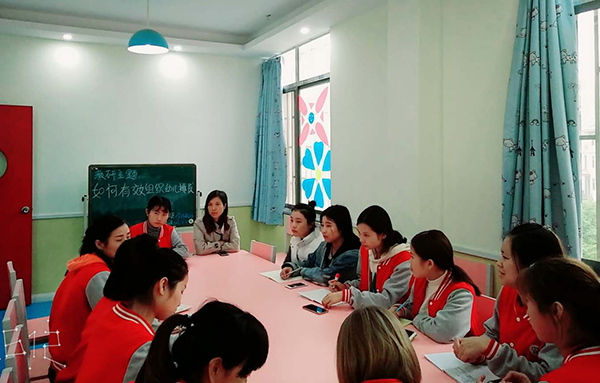 公開課上,姐妹園兩位教師根據班級孩子身心特點,在班級老師的幫助協助下,從內容選擇到環節設計都較好的完成教學流程?;顒雍?,教師們遵循我園的六大育稚教育特色。針對課程目標制定、教學流程、教師基本功等方面進行深入探討。并給出了評課意見,通過聽課、評課、自我反思,姐妹園教師態度認真,表示在教學環境差異較大中,尋找適合自身發展的目標,提高課堂教學水平。