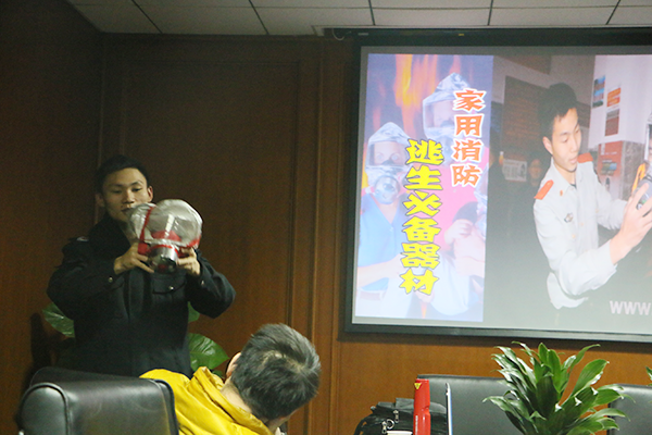 消防員通過播放消防短片及PPT,詳細講解了滅火、防火、逃生三個方面的消防知識,并對消防器材如防毒面具、滅火器等的功能及使用方法進行了步驟演示,對大家提出的各類消防問題也進行了細致的解答。此次消防安全知識培訓讓我們受益匪淺,并進一步擰緊了我們思想上的“安全螺絲”,不僅學習了各類火災的消防知識、掌握了應對的必備技能,自身應對火災的能力還得到實質(zhì)性提升。