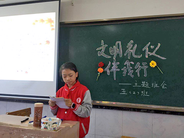 南昌現代外國語學校迎賓校區小學部11月份開展了《文明禮儀伴我行》主題系列教育活動。11月29日下午各班利用班隊會開展形式多樣的主題教育活動。有的班開展詩歌朗誦、有的班進行了演講比賽等。