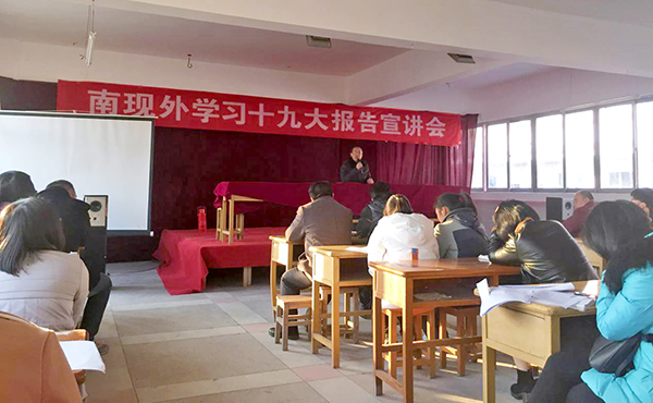 12月20 日下午,南昌現代外國語學校(迎賓校區)組織全體教師認真學習十九大報告的精神。會議由學校黨建指導員、南昌一中黨委書記熊春和圍繞“黨的十九大”內容主持召開。