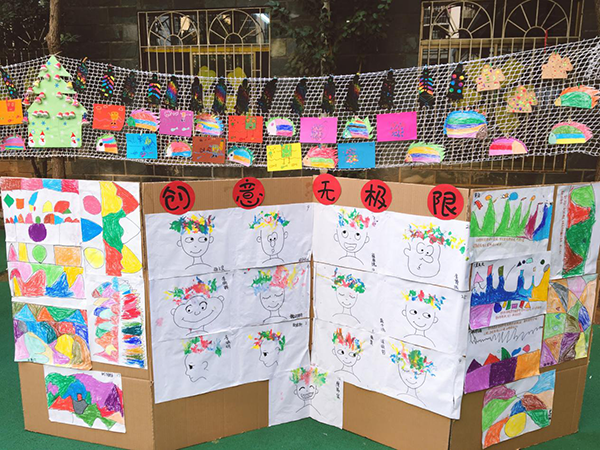 美術興趣班的老師將孩子們一學期的美術作品進行了展示,看著孩子們形式多樣、色彩斑斕的作品,家長感受到了孩子在美術方面的飛躍發展。