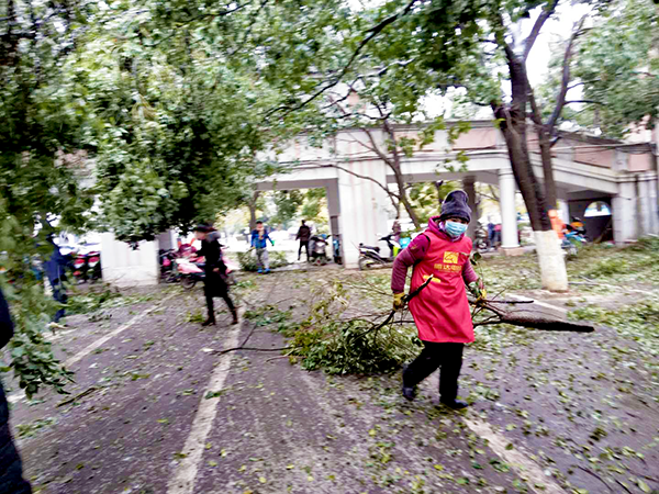■一些學(xué)生看到老師們在辛苦的勞動,他們也積極的參與進(jìn)來,有的幫掃落葉,有的幫抬樹枝。