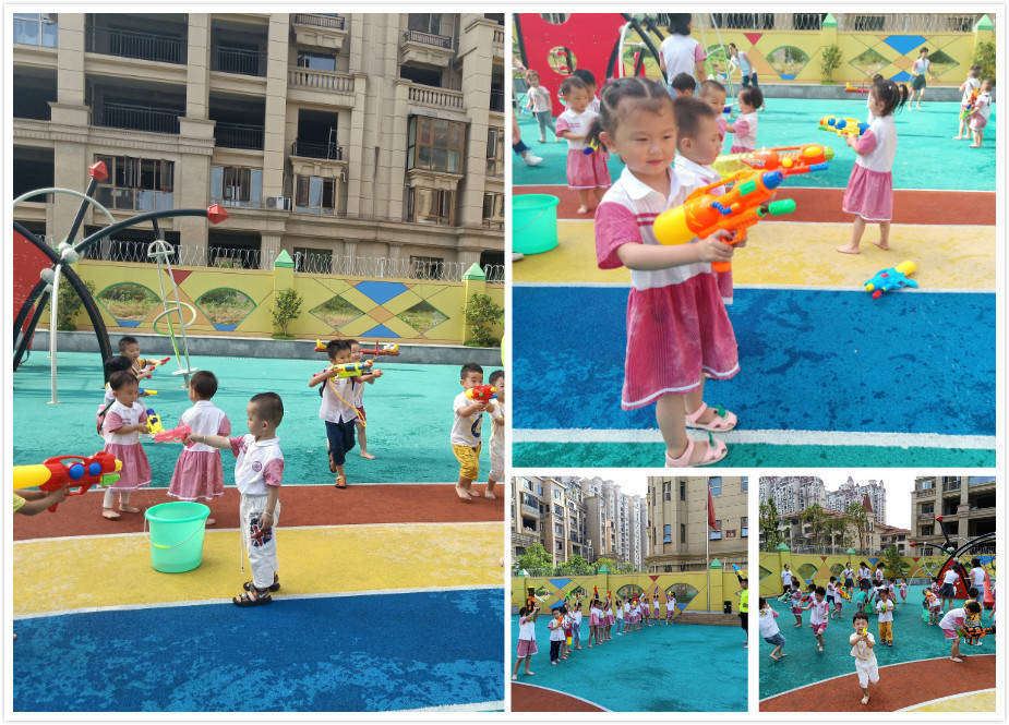 通過此次活動的開展,讓孩子了解集體游戲中要遵守游戲規則;讓孩子學會與同伴合作進行游戲,培養團隊意識;培養孩子躲閃、奔跑、手眼腿協調能力;讓孩子們感受到幼兒園活動的豐富多彩、幼兒園是快樂的、幸福的。與水為樂,與快樂為伍,游戲點亮快樂童年,希望“水槍大戰”玩水游戲能夠成為孩子們美好童年記憶之一! 棉花糖哥哥帶來了特別涼爽的體能課——水槍大戰。