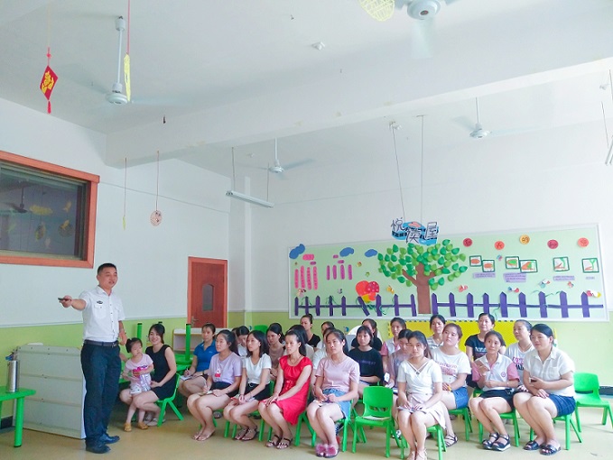 為進一步提高幼兒教師的消防安全意識和自防自救能力,全面推進校園消防安全宣傳工作,8月29日下午2點,園外園·芳草園特邀消防部門李教官,到園區對全體教職工開展一次圖文并茂的消防安全知識培訓。