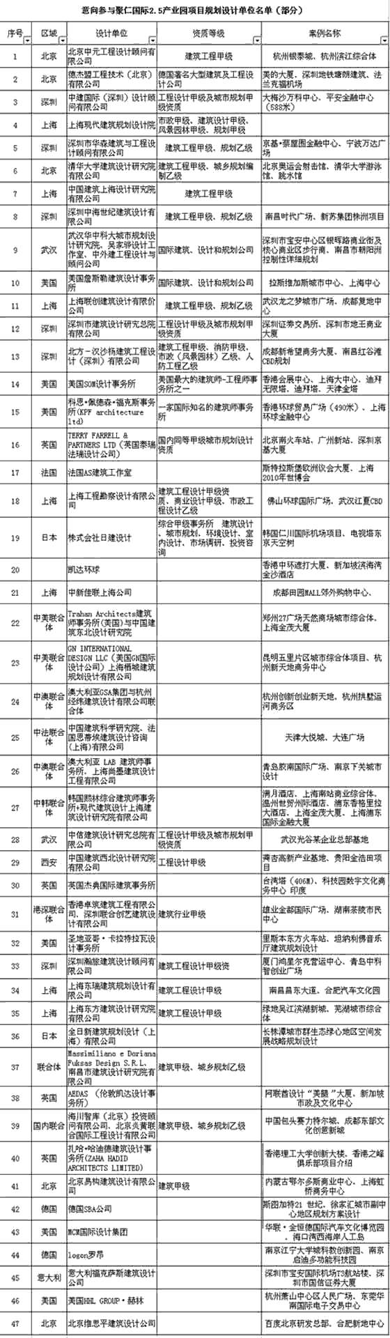 附:意向參與聚仁國際2.5產(chǎn)業(yè)園項目規(guī)劃設(shè)計單位名單(部分)