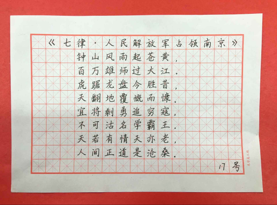 經(jīng)過(guò)1個(gè)多小時(shí)的比賽,一幅幅或清秀、或遒勁、或豪放的作品展現(xiàn)在評(píng)委們的眼前。通過(guò)評(píng)委的公正評(píng)判,三項(xiàng)比賽共評(píng)出一等獎(jiǎng)9名,二等獎(jiǎng)15名,三等獎(jiǎng)21名。