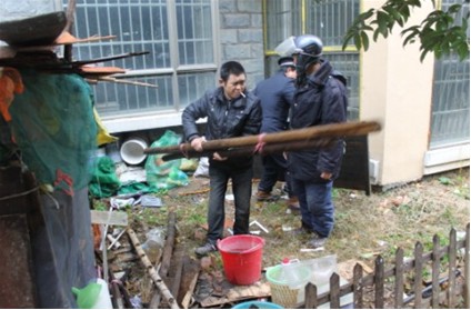 當日上午,根據迎新春環境綜合治理工作會議精神,按照“高標準、高境界、高效率、高效益”工作要求,在公司領導帶領下,聚龍物業組織保安、保潔共20余人,動用鏟車1輛,在小區內開展了包括清掃道路、清理綠化帶生活垃圾、建筑垃圾,清理各種容器積水、樓道堆物,以及拆除違規搭建物等工作在內的環境綜合整治工作。