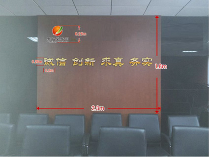首先,電梯出口的形象墻設計至關重要,是集團對外展示的第一個窗口,此外,這一區域的設計還應起到一個指引的作用,告訴來賓集團所處的方位。所以,集團文宣部對此處的風格定位以簡單大方,采用豎式的LOGO,并下面擺一些盆栽作為襯托。辦公區前臺的布置將直接影響來賓對集團公司的整體印象,此處設計應當大氣,采用的也是豎式的LOGO設計方案,與電梯出口處的設計相統一,但在材質上將采用有厚度的亞格力板,LOGO設計將采用噴漆的形式表現出紅綠色漸變的感覺,可以使整體感覺比較立體,既有厚度,顏色上也有變化,與前臺灰色紋理大理石的墻面形成對比。