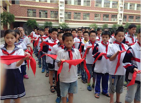 六年級隊員準備為新隊員佩戴紅領巾