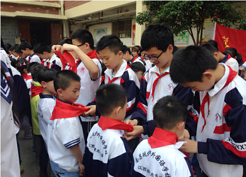 六年級隊員為新隊員佩戴紅領巾