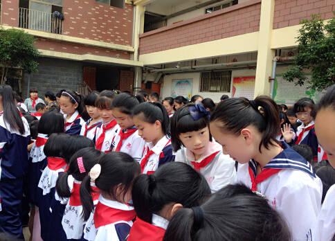 “我們是共產主義接班人,繼承革命先輩的光榮傳統,愛祖國,愛人民,鮮艷的紅領巾飄揚在前胸……”伴隨著嘹亮的中國少年先鋒隊隊歌,學校大隊輔導員謝珊珊老師宣讀了新隊員名單,六年級少先隊員向新隊員敬隊禮,為新隊員佩戴了鮮艷的紅領巾,183名小學生被批準加入中國少年先鋒隊組織,正式成為光榮的中國少年先鋒隊隊員了;大隊輔導員代表全體老師們表達了對新隊員的祝福,寄語全體少先隊員養成良好的學習、生活習慣,為胸前的紅領巾增光添彩,并號召大家用自己的行動證明自己無愧于少先隊員這個神圣的稱號。新隊員在隊旗下莊嚴宣誓、呼號——“為共產主義事業而奮斗,時刻準備著!”