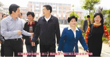 站在文化墻前,一幅幅大型照片選映入眼簾,一股強(qiáng)烈的集團(tuán)榮譽感迎面而來:國務(wù)院副總理回良玉在第九屆全國創(chuàng)業(yè)之星經(jīng)驗交流表彰大會上為胡樂平董事長頒發(fā)‘創(chuàng)業(yè)之星’大獎;江西省委書記孟建柱在胡樂平董事長陪同下考察集團(tuán);江西省委書記萬紹芬在胡樂平董事長陪同下視察集團(tuán)下屬學(xué)校;江西省副省長孫剛視察集團(tuán)下屬江西工商職業(yè)技術(shù)學(xué)院;胡樂平董事長與江西省省長吳新雄,江西省委常委、南昌市委書記余欣榮等領(lǐng)導(dǎo)合影;胡樂平董事長與江西省委常委、常務(wù)副省長凌成興合影;全國政協(xié)副主席厲無畏、胡樂平董事長與參加中國經(jīng)濟(jì)貿(mào)易促進(jìn)會年會的全體嘉賓合影;集團(tuán)副董事長劉雁華與教育部副總督學(xué)郭福昌合影;商務(wù)部產(chǎn)業(yè)損害調(diào)查局局長劉歡向胡樂平董事長頒發(fā)中國經(jīng)濟(jì)貿(mào)易促進(jìn)會副會長聘書;江西省委教育工委書記、教育廳廳長虞國慶視察集團(tuán)下屬江西工商職業(yè)技術(shù)學(xué)院等,各級政府、領(lǐng)導(dǎo)對集團(tuán)發(fā)展的關(guān)心與支持,極大地增強(qiáng)了員工的責(zé)任感和榮譽感,有效提升了員工的凝聚力,營造了團(tuán)結(jié)奮進(jìn)、積極向上的工作氛圍。