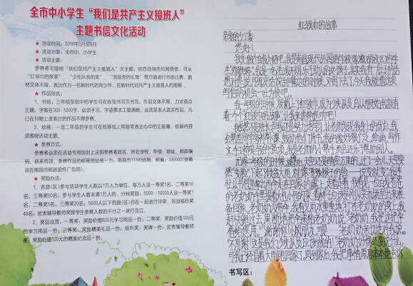 為深入貫徹團市委、市教育局、市學聯、市少工委《關于在青少年中深入開展“我們是共產主義接班人”主題團、隊宣傳教育活動的通知》的文件要求,進一步引導廣大共青團員、少先隊員樹立共產主義遠大理想,堅定跟黨走中國特色社會主義道路的信念和信心,增強青少年對黨和社會主義祖國的樸素感情,近日,南昌現代外國語學校(象湖校區)積極組織全校學生開展了以“我們是共產主義接班人”為主題的書信文化活動。此次活動旨在通過專用郵資信封和信箋作為載體,以傳統書信傳遞真情的形式,深化團員和少先隊員對實現遠大理想要靠廣大青年腳踏實地奮斗的認識理解,讓青少年認識到共產主義理想的實現需要一代又一代人的接力奮斗,鼓勵學生們不僅僅要做一名好學生,更要成為一個有所擔當的共產主義接班人。
