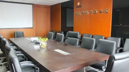 除前臺外,集團辦公區域設計主要集中在企業文化墻、辦公室科室牌和會議室背景墻上。其中,企業文化墻呈圓弧型,共20余平方米,由10幅照片交錯組成,主要以各級領導視察集團、關心集團發展為主題,集中展示了在集團的發展歷程中,從中央到省市各級政府、領導對集團的高度重視與大力支持;各部門科室牌外形設計為長方形,配以藍色底紋,與玻璃墻面上的藍色防撞貼相呼應,讓人形成統一的視覺感受;會議室的背景墻上則安裝了“誠信 創新 求真 務實”8個燙金大字,提醒大家要時刻謹記集團的經營理念,努力實現集團的發展目標。