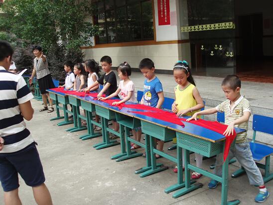 比賽開始前,校長李金玉宣布了競賽紀律、競賽規(guī)則及裁判員名單,宣布每個班級分別派出5-8名參賽隊員,根據(jù)年級不同而選定不同的競賽項目。比賽開始后,首個競賽項目是自主系紅領(lǐng)巾,由一年級三個班共15名選手參賽。待口哨一響,小選手們你爭我趕,情況很快有了變化:有的已經(jīng)系好了紅領(lǐng)巾,而有的才開始疊,操場上“加油”、“加油”的吶喊聲、笑聲此起彼伏,令人忍俊不禁……