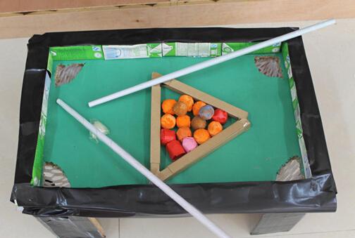 老師們根據各班孩子的年齡特點,本著節約、環保的原則,按照自制、創新、安全、實用的要求,利用硬紙殼、毛線、用過的水彩筆、塑料瓶、易拉罐、光盤、報紙、方便面紙筒、酸奶盒、薯片筒、奶粉桶、鐵盒子等廢舊材料制作了近百余件組合玩具,這些自制玩教具取材容易,制作方法簡單,美觀實用,安全耐用,既可以做上課的教具,又可以作為玩具投放到活動區供幼兒講故事、動手操作、探索、計算數數、體育鍛煉等,得到家長的一致好評。