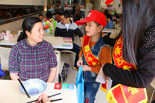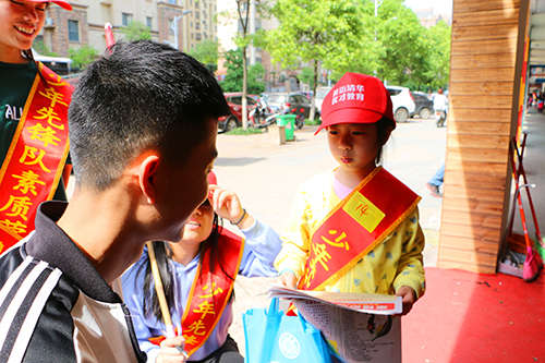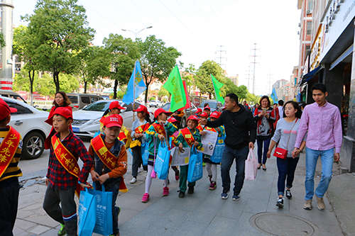 活動中,不是每一個小朋友天生就擅長與人溝通,有些孩子怯于開口,總想躲在家長的后面,遲遲不敢邁出第一步,不敢大聲開口招呼路人;有的孩子也遇到路人根本不會停下匆忙的腳步聽你講話,也有人聽完后只是微微一笑走開。滿腔的熱情卻被現實潑了一盆冷水,讓小朋友感受一下挫折教育,增強一下抗壓力也是此次活動的一筆巨大收獲。