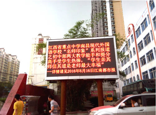 大型led顯示屏的落成,無疑給崛起中的“南現外”插上了奮飛的翅膀,讓社會能夠更進一步了解學校,讓老師能夠即時了解學校的信息動態,也讓學生有了一處接受教育的視頻天地。社會的進步離不開教育,教育的發展更離不開科技,相信隨著led顯示屏的落成,南昌現代外國語學校(迎賓校區)的教育之花會一天比一天開的更加燦爛。