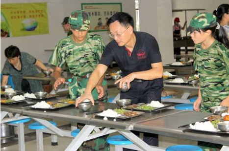 軍訓(xùn)期間,學(xué)校領(lǐng)導(dǎo)各班班主任和全程參與,為同學(xué)們做好各項后勤工作,學(xué)校副校長胡卓越更是親自到食堂,和老師、同學(xué)們一起為軍訓(xùn)學(xué)員準(zhǔn)備午餐,確保軍訓(xùn)活動順利開展。